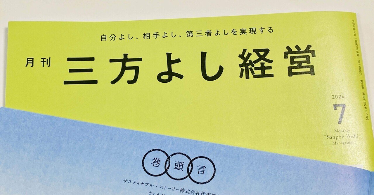 「月刊 三方よし経営」の巻頭言を、僭越ながら書かせていただきました。 名だたる皆様が登場する場所に、自分は何を伝えられるか…と考えたとき、あ…